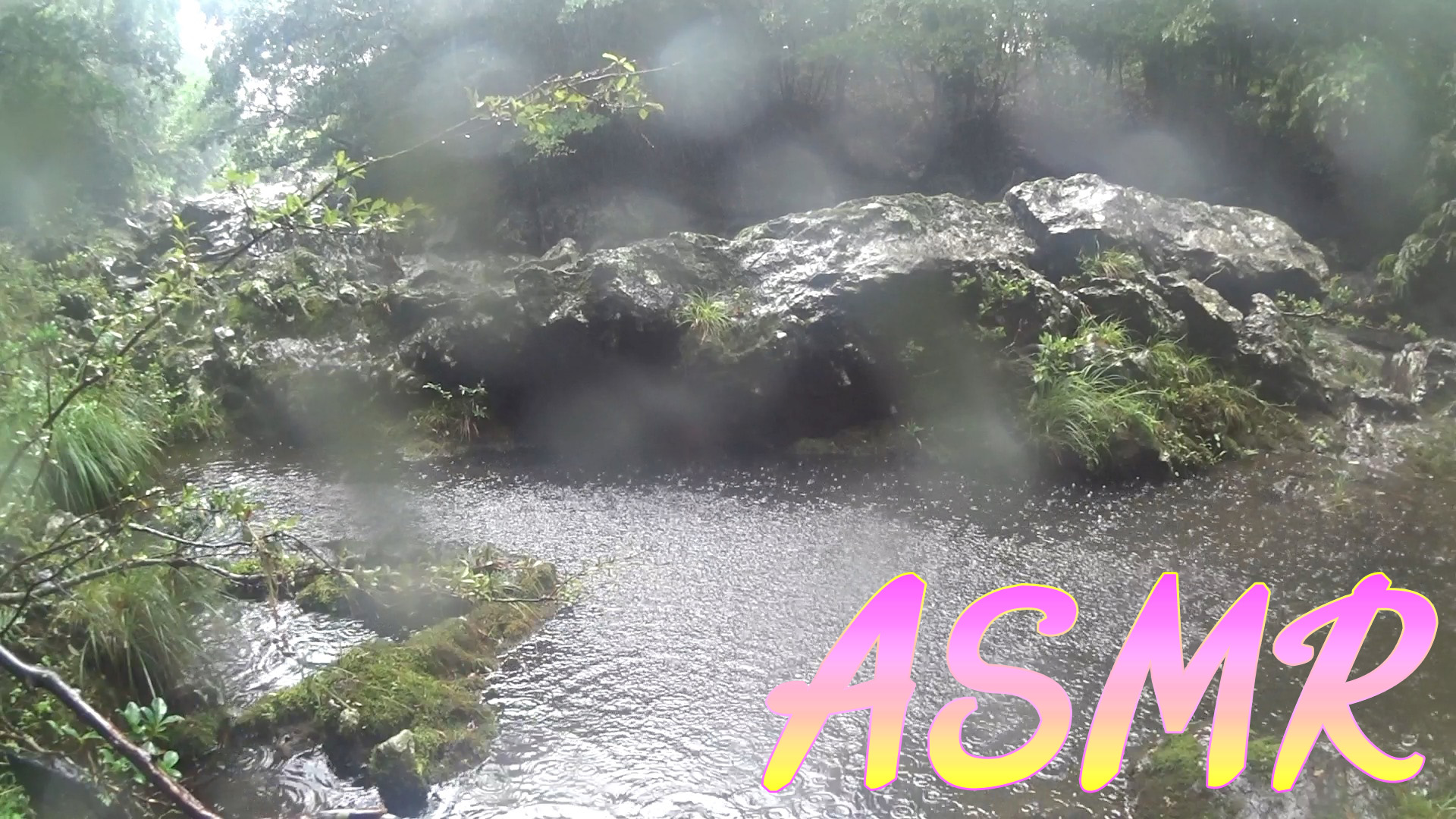 바람이 엄청부는 날 계곡 웅덩이에 내리는 빗소리 입니다.