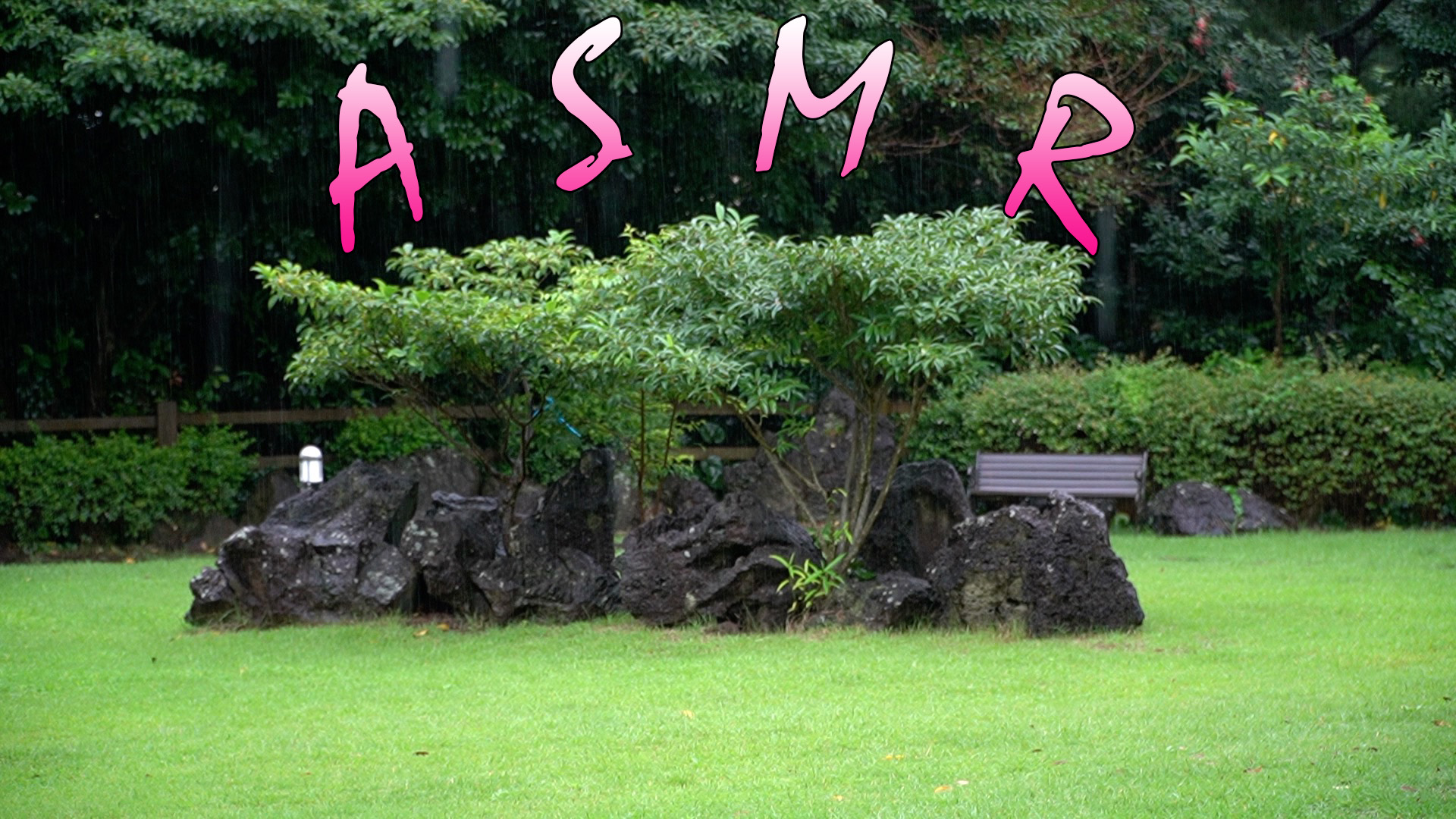 조경한 바위와 나무를 배경으로 포근한 빗소리를 들어 보세요.