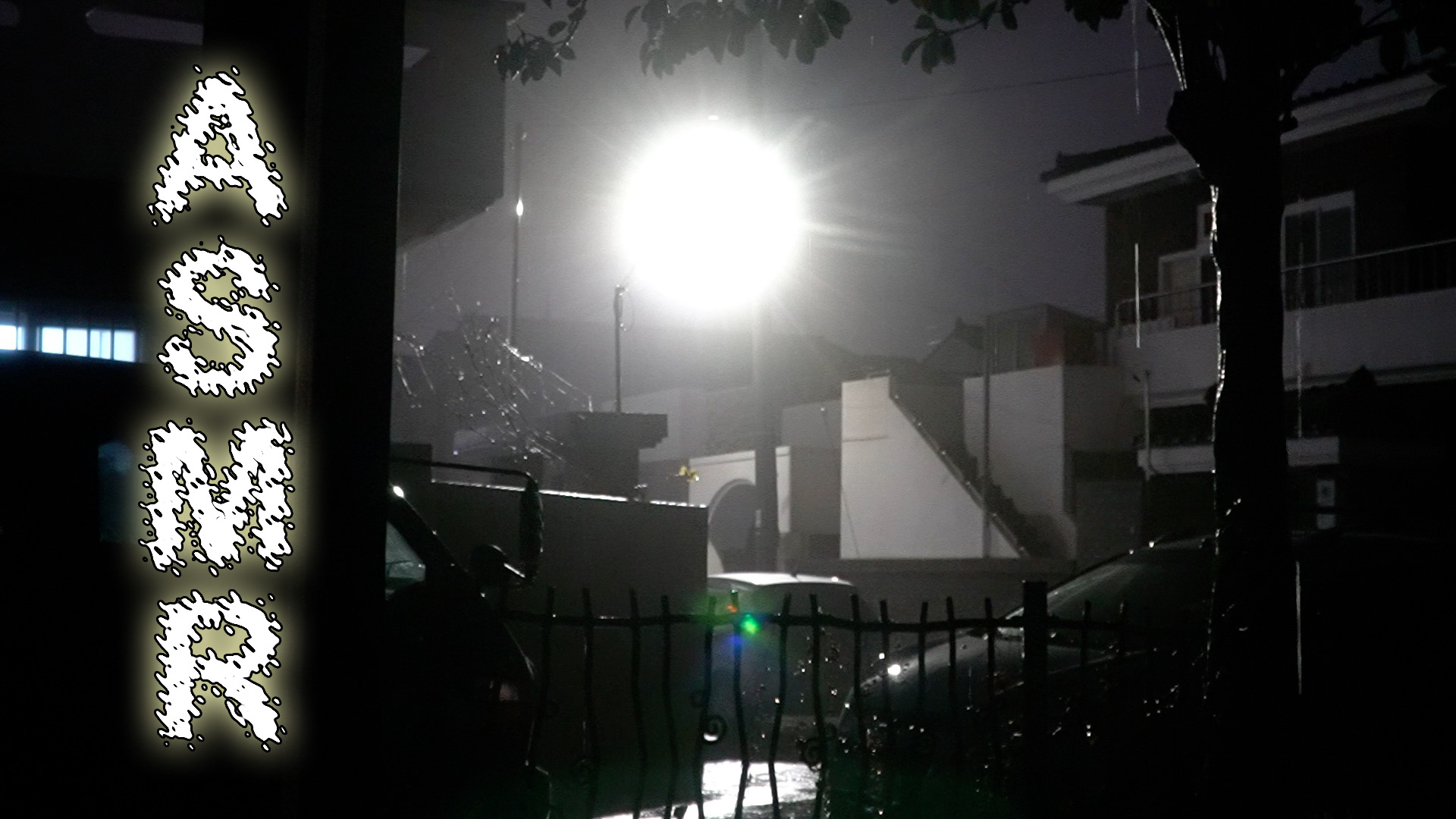 어두운 밤 가로등불이 있는 골목길에 내리는 빗소리 입니다.