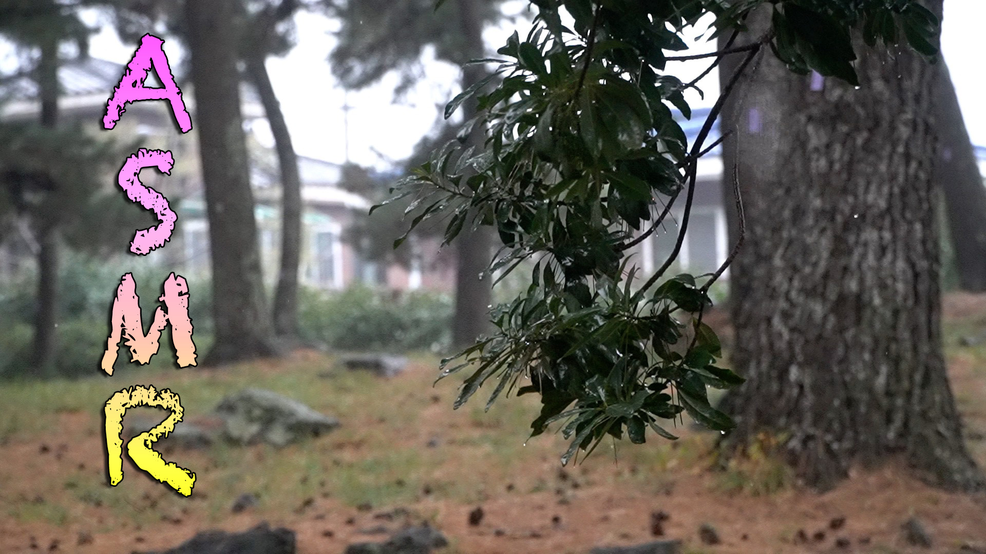 동네에 있는 작은 공원 소나무숲에 내리는 빗소리 입니다.