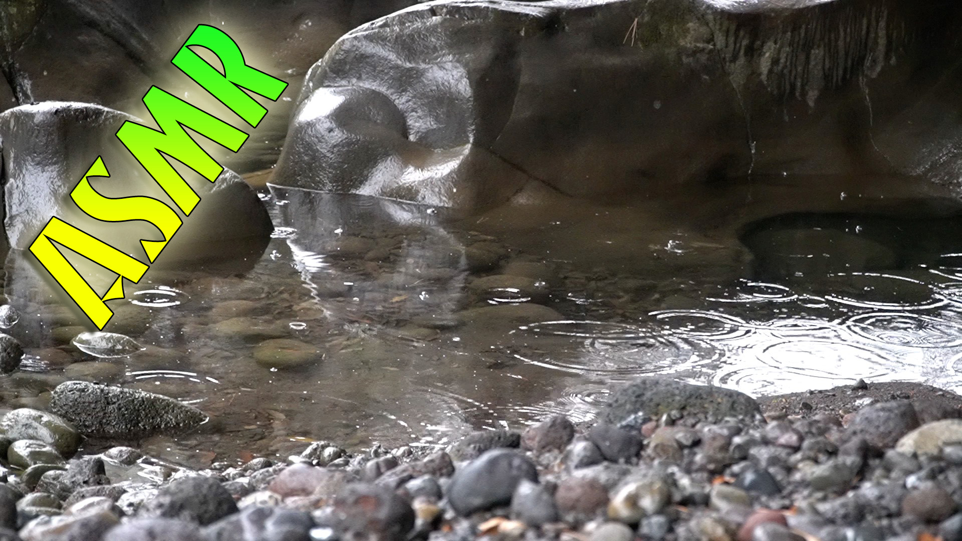 계곡 고인물에 잔잔히 비가 내립니다.