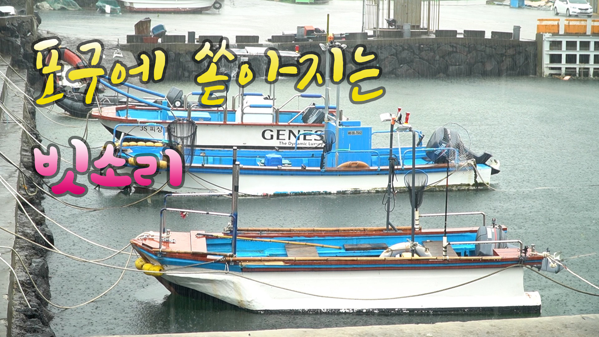 작은 포구에 비가 쏟아 집니다.
