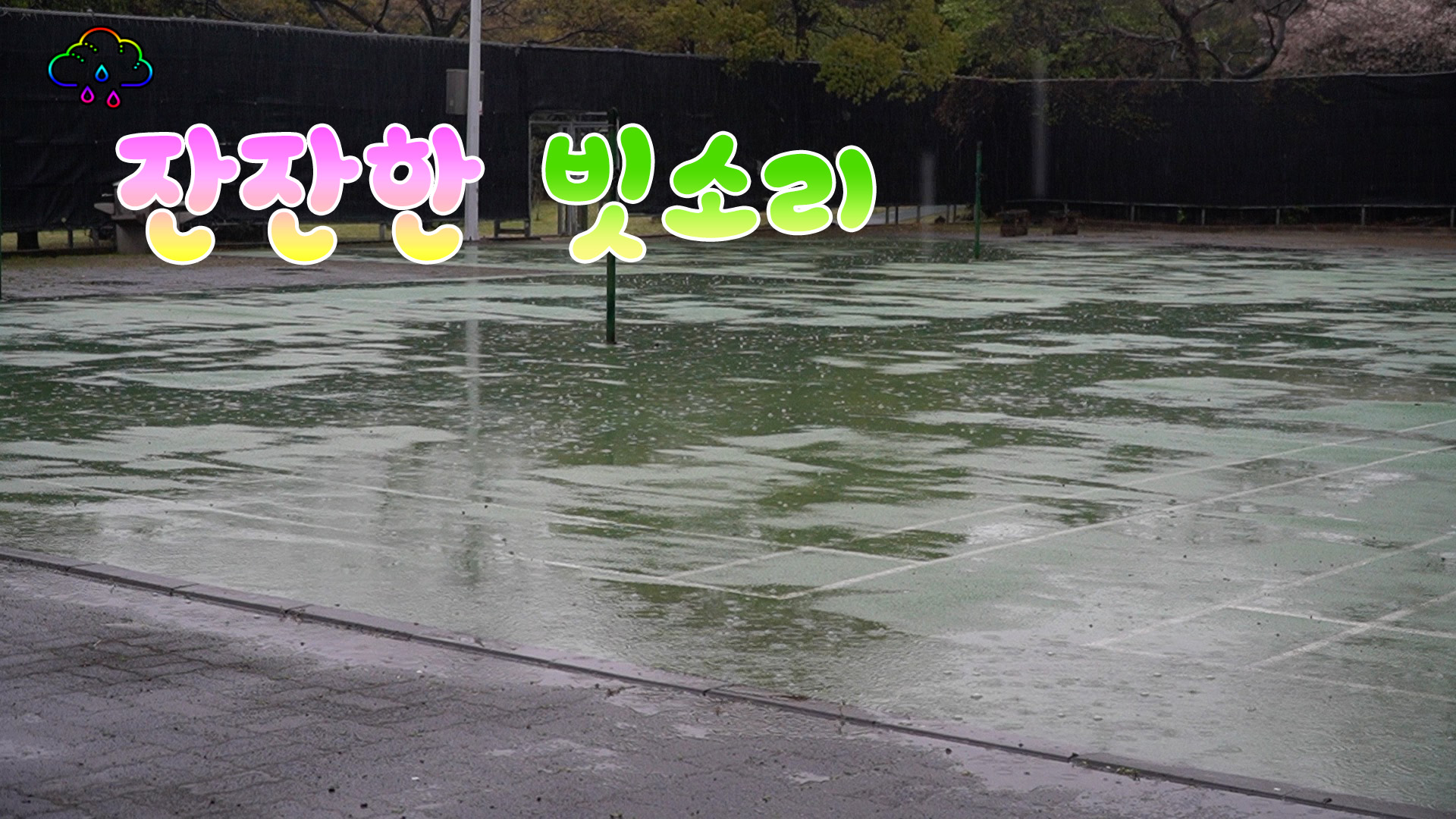 공원 배드민턴 코트에 잔잔히 비가 내립니다.