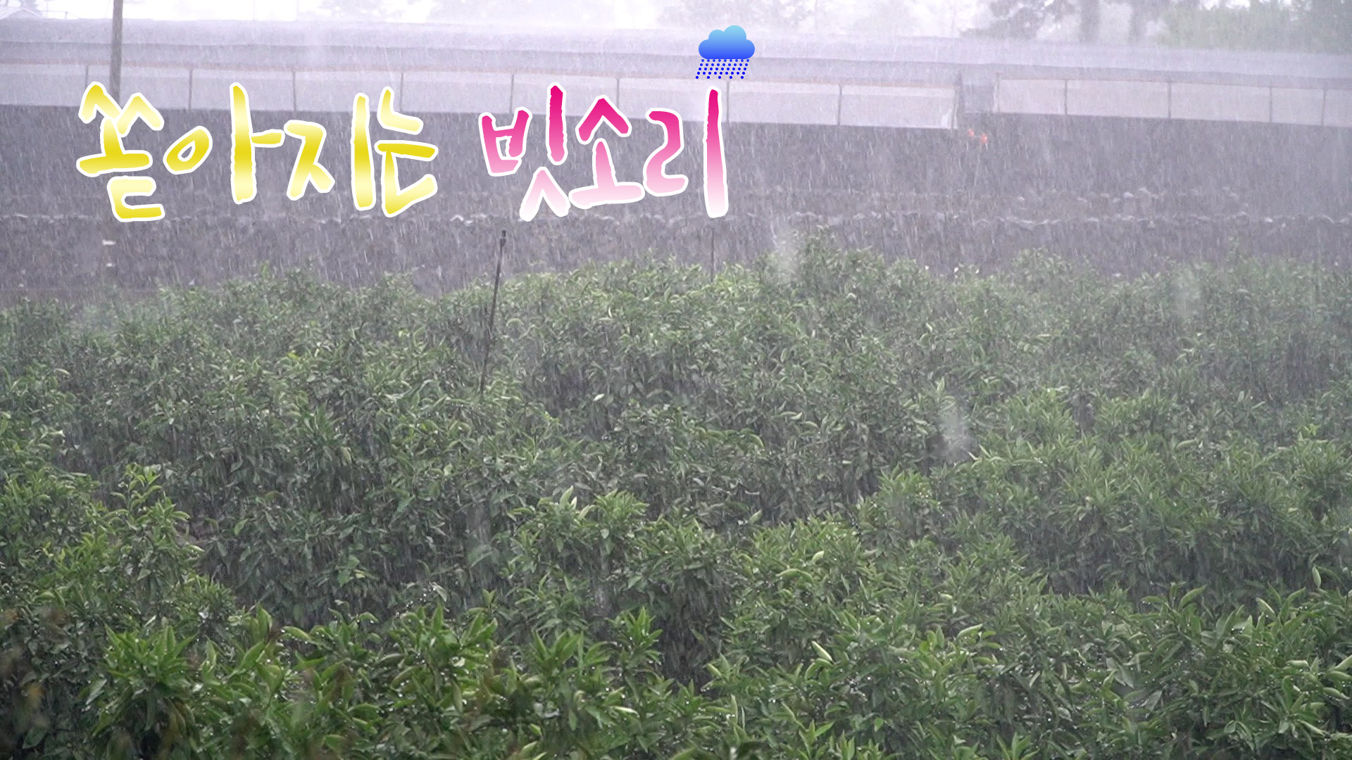 감귤밭에 비가 엄청나게 쏟아 집니다.