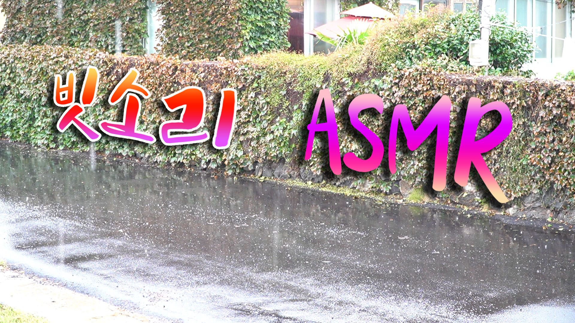 넝쿨이 가득한 돌담을 배경으로 내리는 빗소리입니다.