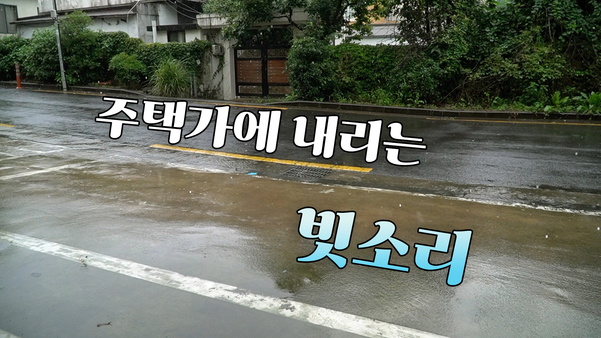 빗물이 빌라 주차장 바닥으로 떨어지면서 내는 소리와 배수관으로 떨어지면서 나는 여러 백색소음이 섞여 있습니다.