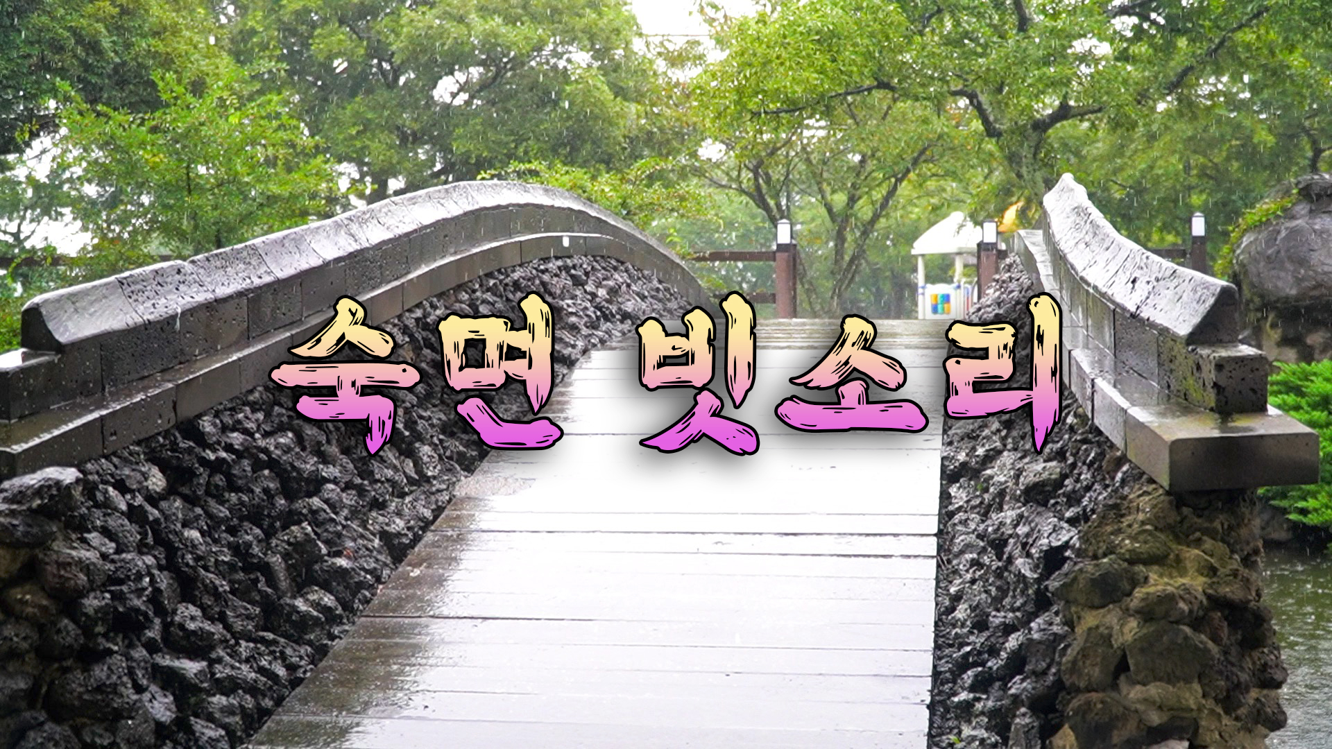 연못이 있는 다리 위로 비가 내리는 소리입니다.